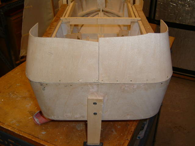 A few days and many hours later the remaining upper works have been tailored to fit the fixed part of the superstructure and the whole thing looks as if it were designed that way.........................a lesson learned and goodbye excessive heel !