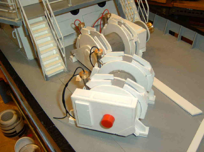 Life rafts are from plastic electric conduit and 2mm plastic card, the stiffeners are slices of the conduit.