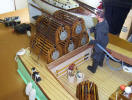 G’day Martin Another launch ay Surrey Park Model Boat Club today and it was a quiet affair without the fanfare, but the size of this lady is very impressive I didn’t have a tape measure on hand to get all the relevant details but have a look at picture number 7 to get an idea of the size (yes it a normal packet of smokes on the deck) there are plans for some railing, a small crane, crayfish pots and people to be added, but I believe it would be possible to put a small child onboard without to many hassles. Powered by a 750 motor spinning a single propeller about 3 inches in diameter she went well but it already looks like she needs to be re-powered as with a direct drive the motor is getting very hot (or you could just put a pot over it and cook the crayfish as they are caught) all in all another brilliant model at the lake, will endeavor to keep you up to date with the project as news comes to hand. Cheers Steve |
