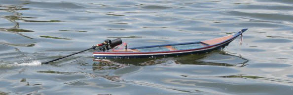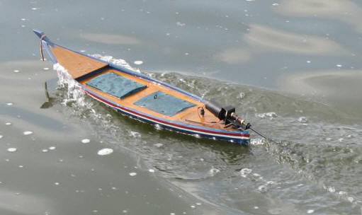 Hi Martin, This is my Reua Hang Yao (Long Tail Boat). On my first visit to Thailand, Long Tails were just part of the scenery but on my second visit I fell in love with them and decided that a RC model just had to be made. When I returned home I contacted model shops in the UK and Asia to get hold of some plans, but none were available. So based on my memory, photos I had taken and the dimensions for the length, Beam, Depth and Draught of a full size boat I found on an internet site I created a set and built one. The attached photos show the results of my efforts. If I was to build another one there are a few changes to sizes that need to be made to remove some scale effect issues, but over all I am very pleased with how it looks and performs on the water. Regards, Geoff Jones. (The Red Dragon). |